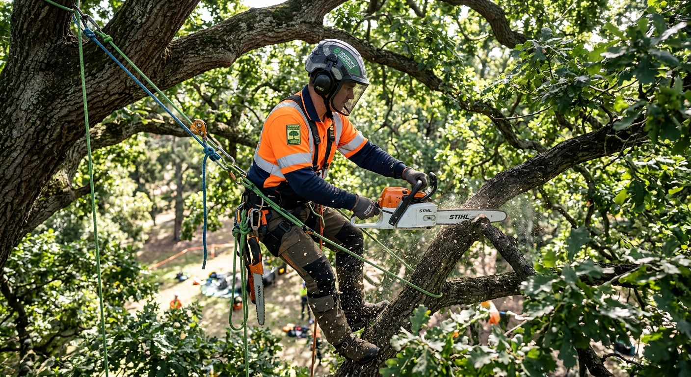 Tous nos partenaires sont certifies ISA (International Society of Arboriculture). Assurance responsabilite civile et equipement de securite verifies.