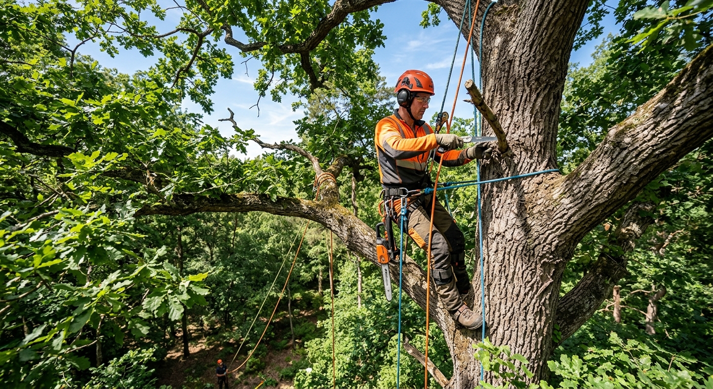 Tous nos partenaires sont certifies ISA (International Society of Arboriculture). Assurance responsabilite civile et equipement de securite verifies.