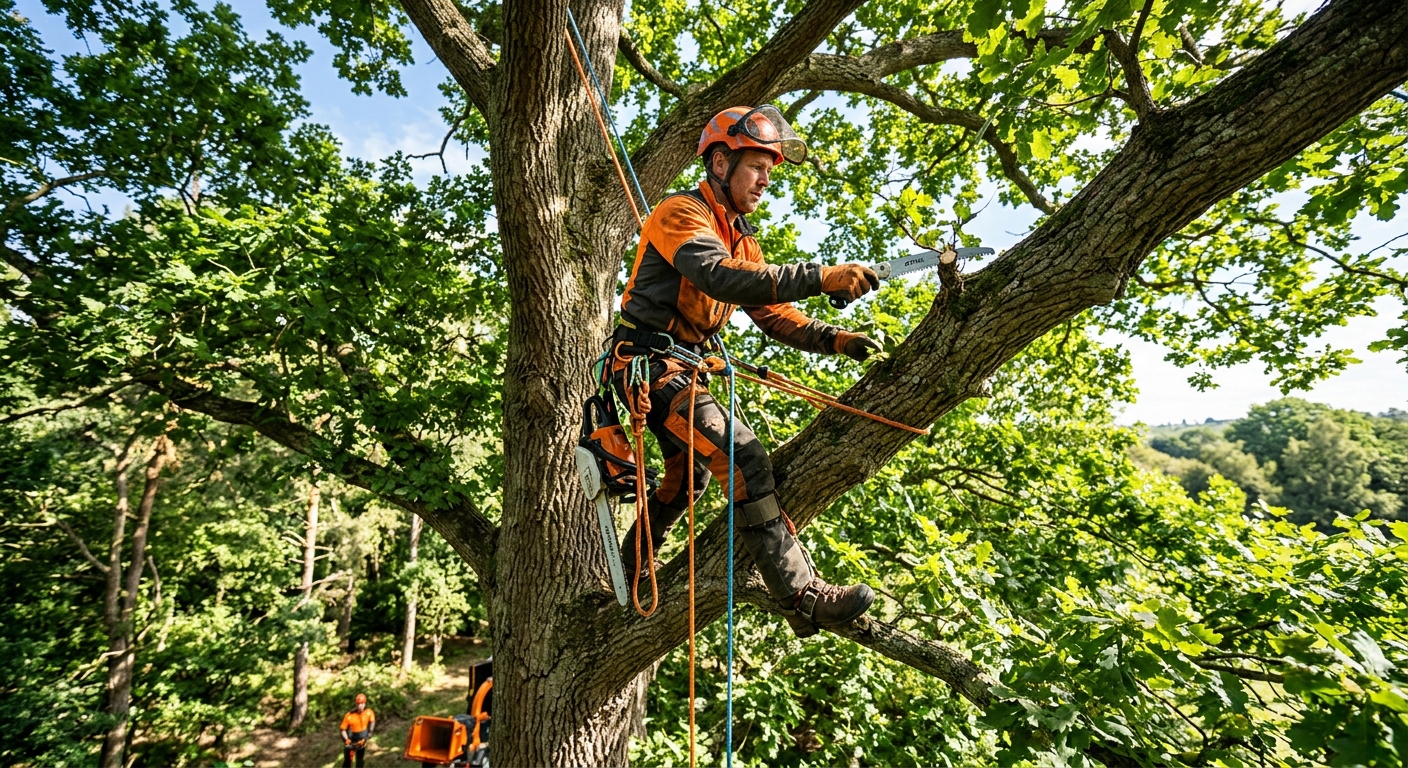 Tous nos partenaires sont certifies ISA (International Society of Arboriculture). Assurance responsabilite civile et equipement de securite verifies.