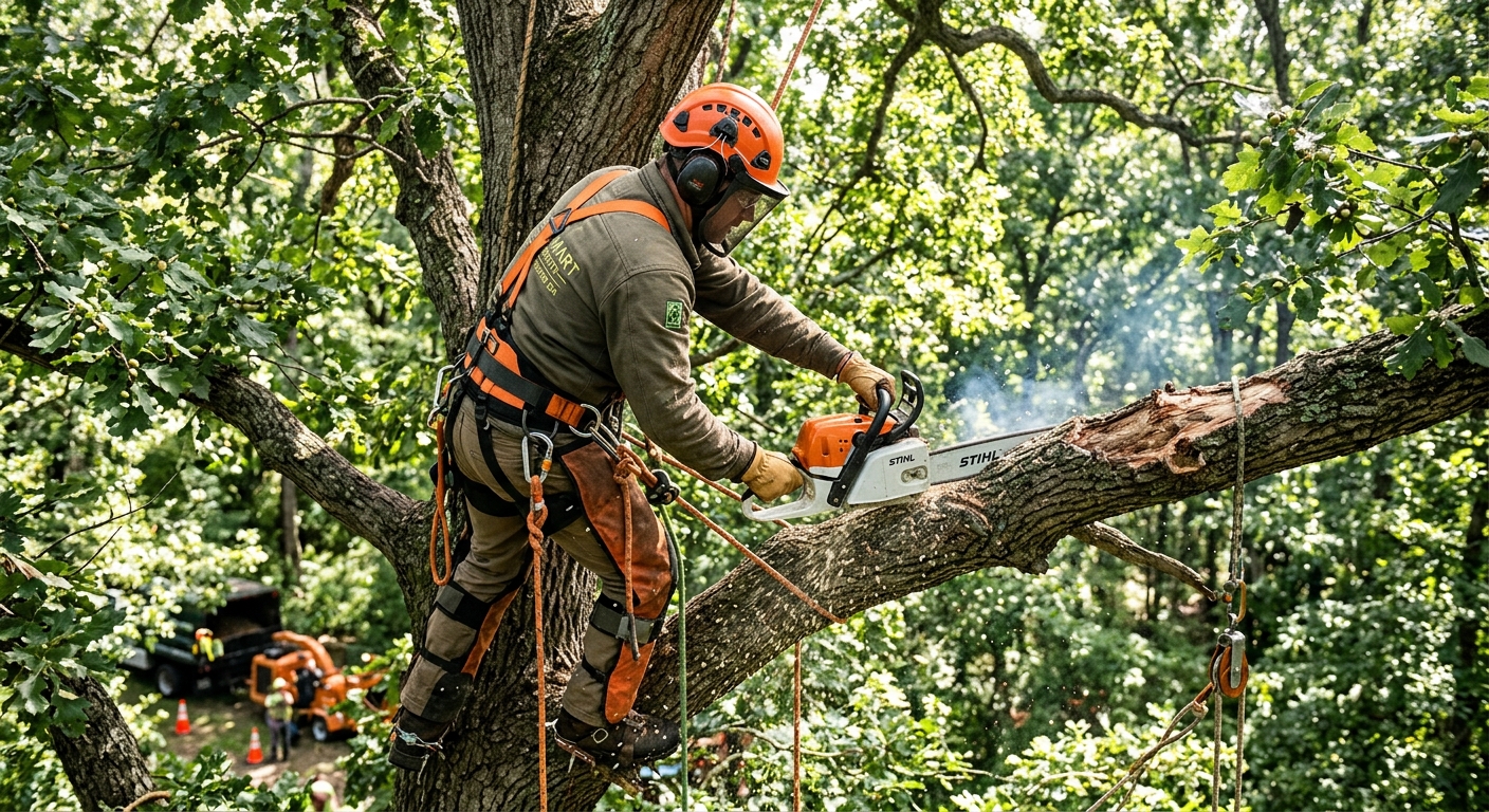 Tous nos partenaires sont certifies ISA (International Society of Arboriculture). Assurance responsabilite civile et equipement de securite verifies.