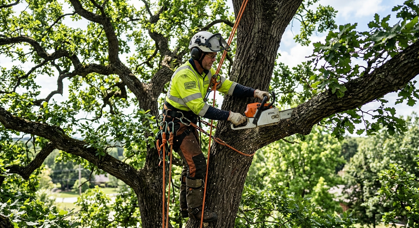 Tous nos partenaires sont certifies ISA (International Society of Arboriculture). Assurance responsabilite civile et equipement de securite verifies.
